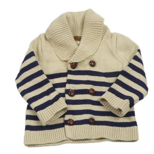 Béžovo-tmavomodrý pruhovaný propínací svetr