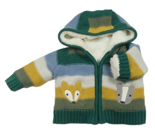 Pruhovaný propínací zateplený svetr se zvířátky a kapucí Nutmeg