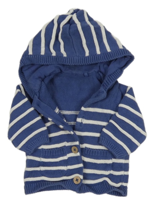 Modro-bílý pruhovaný propínací svetr s kapucí Tu