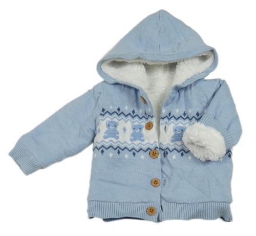 Světlemodrý propínací zateplený svetr s medvídky a kapucí Nutmeg