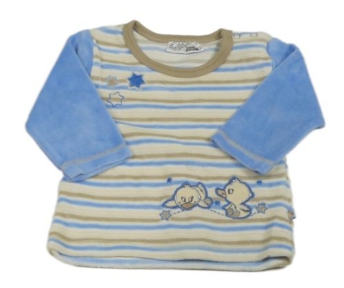 Bílo-béžovo-modrá pruhovaná sametová mikina s kačery a hvězdičkami Ergee