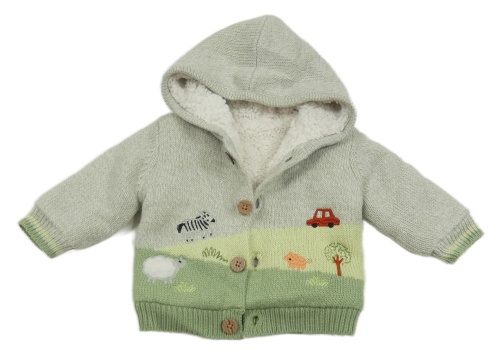 Šedo-zelený pletený zateplený propínací svetr s obrázky a kapucí Nutmeg