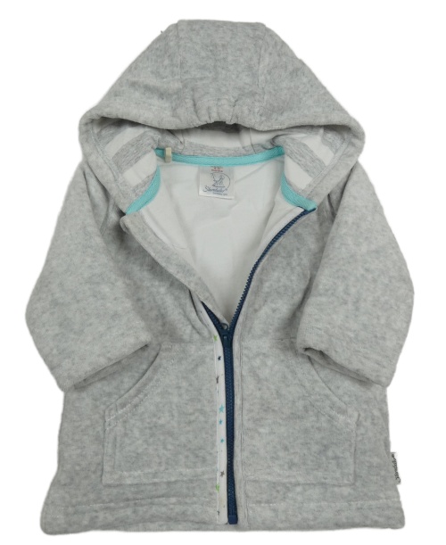 Světlešedá melírovaná sametová zateplená propínací mikina s kapucí