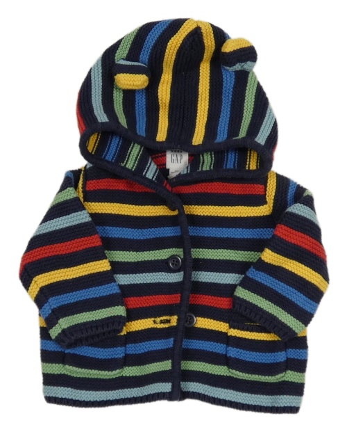 Tmavomodro-barevný pruhovaný propínací svetr s kapucí GAP