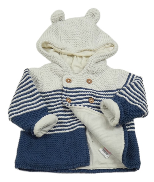 Světlešedo-tmavomodrý podšitý propínací svetr s pruhy a kapucí M&S