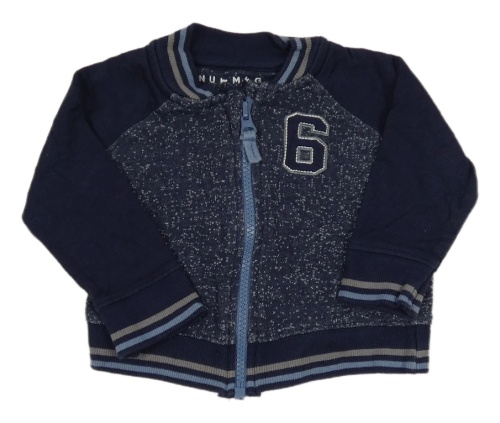 Tmavomodrá melírovaná propínací mikina s číslem Nutmeg