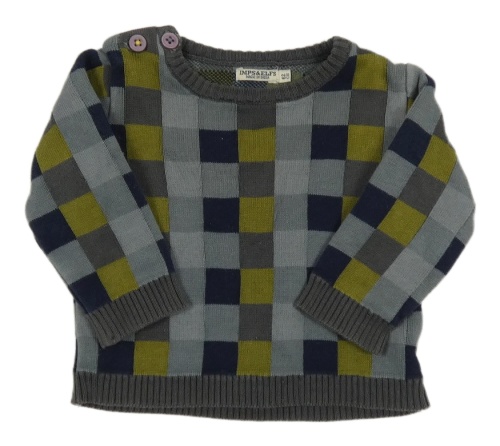 Šedo-tmavomodro-olivový kostkovaný svetr