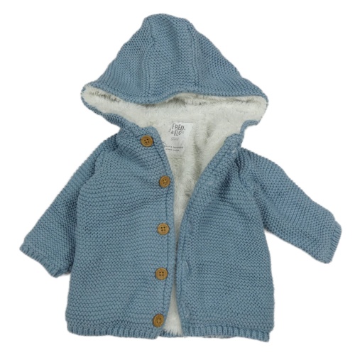 Modrý pletený zateplený propínací svetr s kapucí F&F