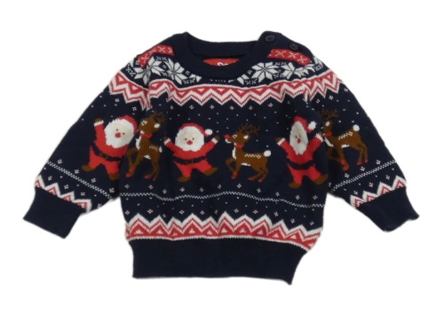 Tmavomodro-červený vzorovaný vánoční svetr Primark