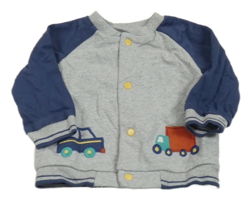 Šedo-tmavomodrá propínací mikina s auty M&Co.