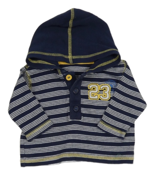 Tmavomodro-bílá pruhovaná mikina s číslem a kapucí George