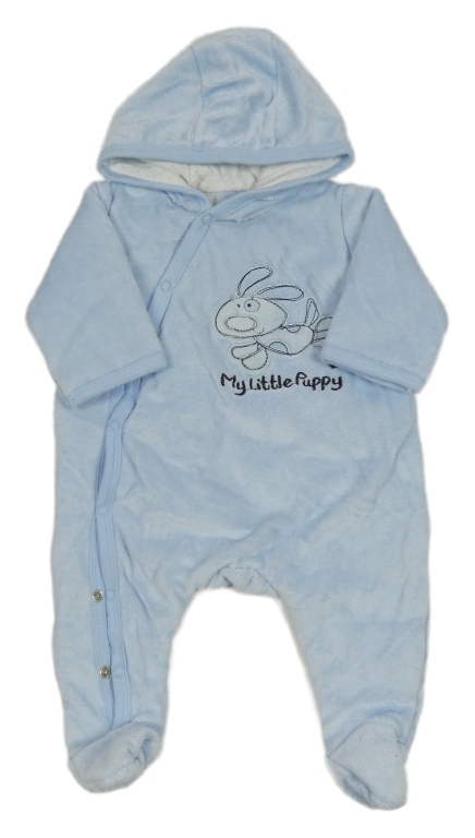 Světlemodrá sametová žebrovaná kombinéza se zajícem a kapucí