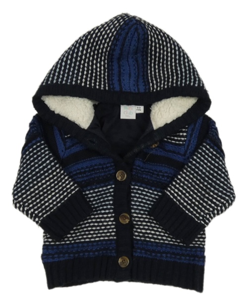 Tmavomodro-modro-bílý pruhovaný podšitý propínací svetr s kapucí Miniclub