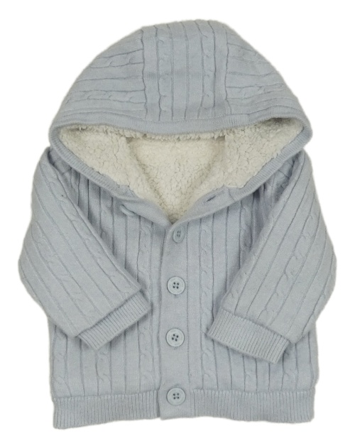 Světlemodrý žebrovaný vzorovaný propínací zateplený svetr s kapucí little nutmeg
