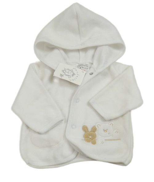 Nové - Bílá fleecová propínací mikina se zvířaty a kapucí