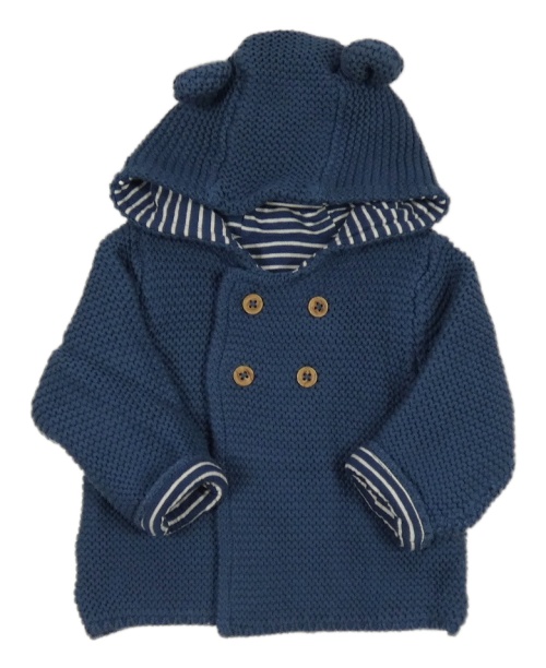 Tmavomodrý propínací podšitý svetr s kapucí s oušky M&S