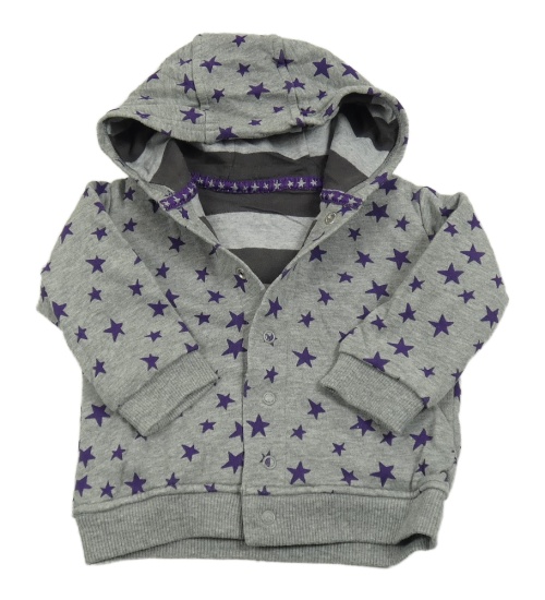 Šedá oboustranná propínací mikina s hvězdami a kapucí