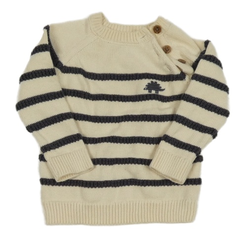 Smetanovo-tmavošedý pruhovaný svetr s dinosaurem F&F