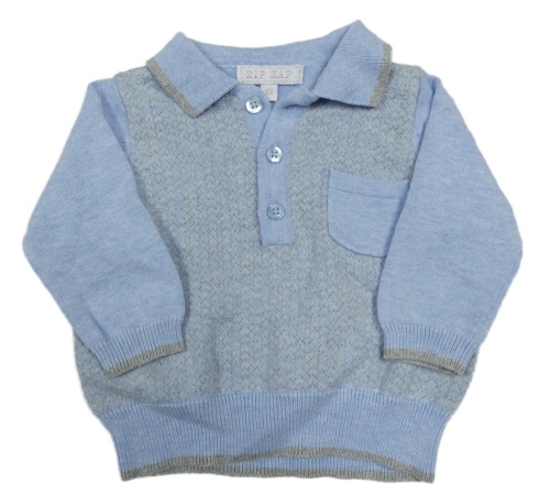 Světlemodro-šedý vzorovaný melírovaný svetr s kapsou a límečkem ZIP ZAP