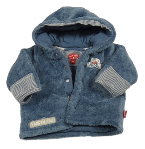 Šedomodrá plyšová propínací zateplená mikina s nášivkou a kapucí Pampolino