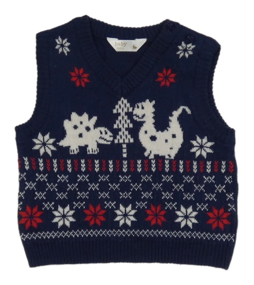 Tmavomodro-bílo-červená svetrová vzorovaná vesta s diny M&Co.