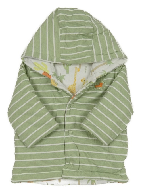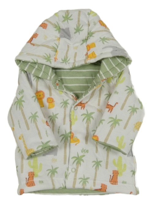Bílo-zelená zateplená propínací oboustranná mikina se zvířaty a kapucí