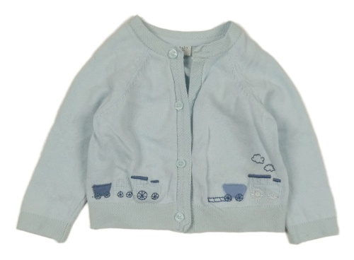 Světlemodrý propínací svetr s vlaky Next