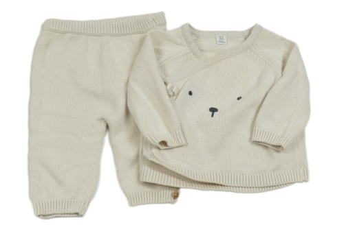 2set - Světlebéžový zavinovací svetr s medvědem + pletené tepláky M&S