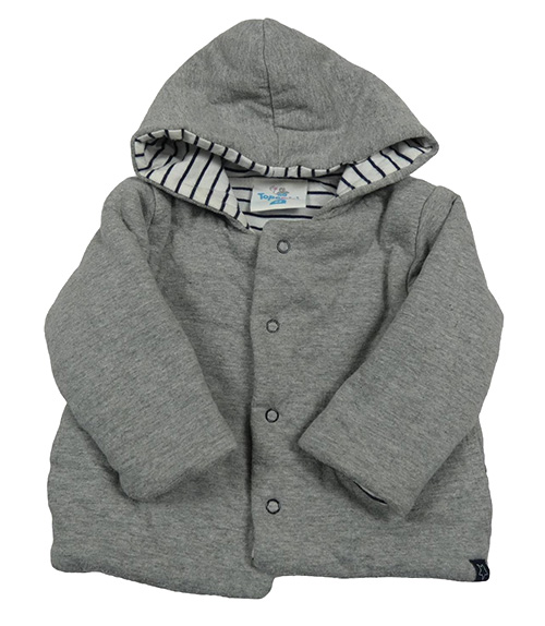 Šedá melírovaná zateplená propínací oboustranná mikina s kapucí Topomini