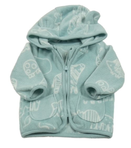 Světlemodrá fleecová propínací mikina s dinosaury a kapucí George