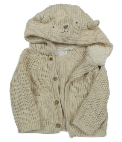 Béžový propínací svetr s kapucí - medvěd Primark