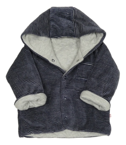 Tmavomodro-bílá pruhovaná sametová zateplená propínací mikina s kapucí M&S