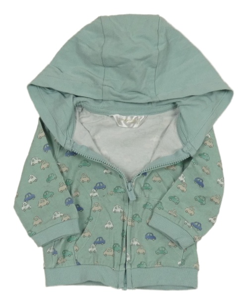 Světlezelená propínací mikina s auty a kapucí Mayoral