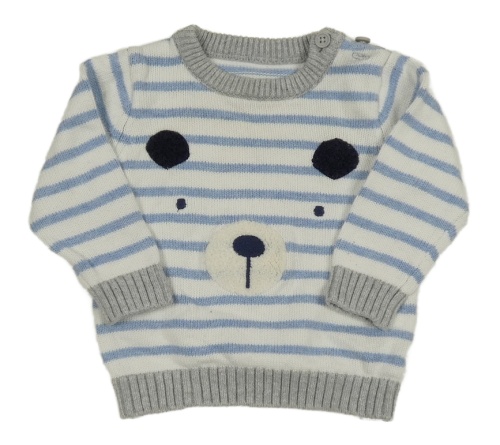 Bílo-modro-šedý pruhovaný svetr s čumákem Nutmeg