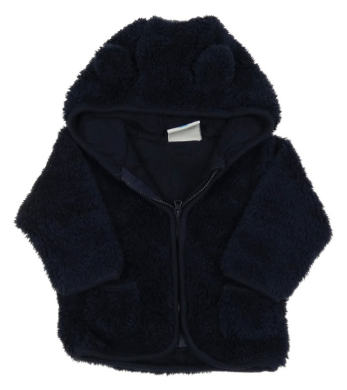 Tmavomodrá chlupatá propínací podšitá mikina s kapucí Topomini