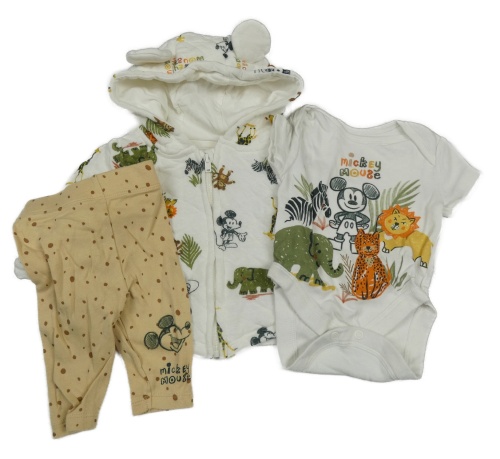 3set - Bílá propínací zateplená mikina s Mickeym + body + béžové tepláky Disney