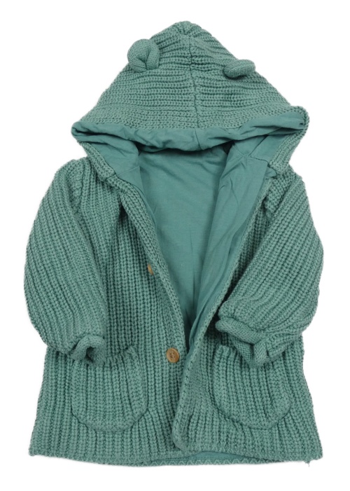 Zelený pletený podšitý propínací svetr s kapucí George