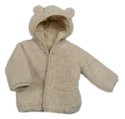 Béžová huňatá propínací podšitá mikina s kapucí
