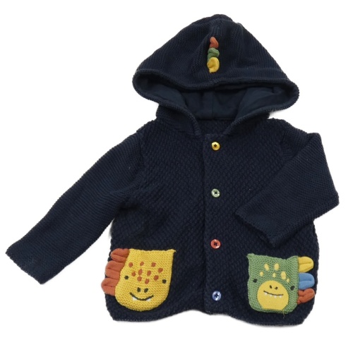 Tmavomodrý propínací svetr s kapsami s dinosaury a kapucí Tu