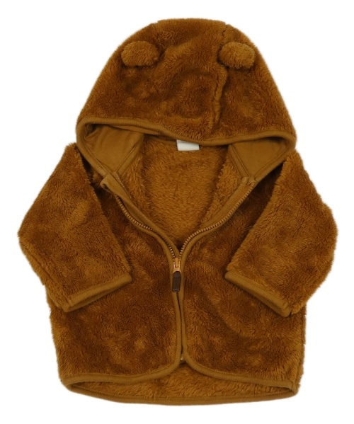 Medová chlupatá propínací mikina s kapucí