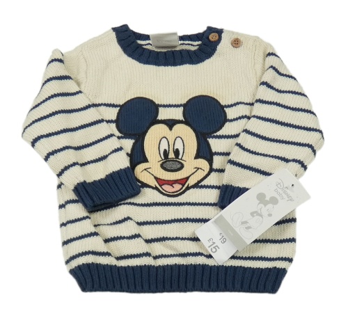 Nové - smetanovo-tmavomodrý pruhovaný svetr s Mickey Disney