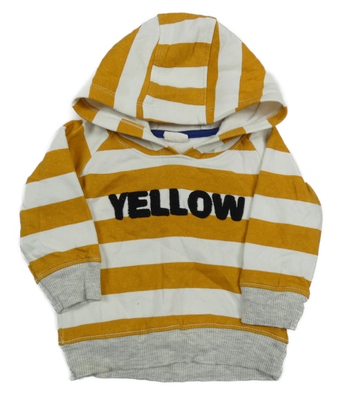 Medovo-bílo-šedá pruhovaná mikina s nápisem a kapucí HEMA