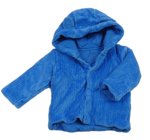 Modrá sametová žebrovaná zateplená propínací mikina s kapucí M&S