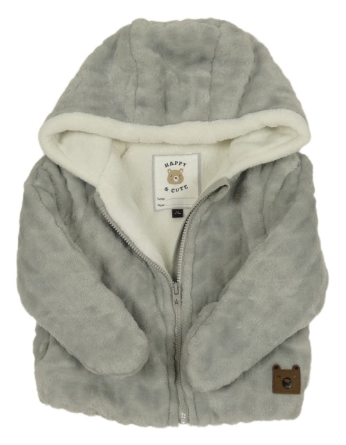 Šedá vzorovaná plyšová zateplená propínací mikina s kapucí