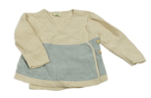 Béžovo-modrý zavinovací svetr s pruhy Alana
