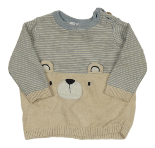Béžovo-světlemodrý pruhovaný svetr s medvídkem F&F