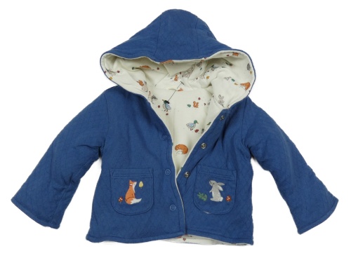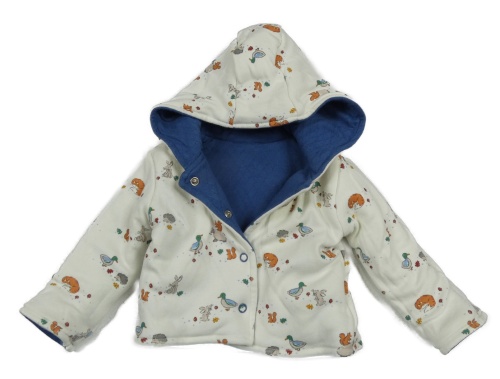 Smetanová zateplená oboustranná propínací mikina se zvířátky a kapucí Jojo Maman Bébé