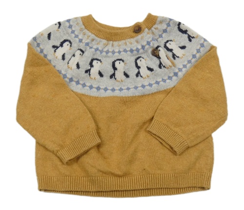 Okrovo-šedý lehký vlněný svetr s tučňáky M&S