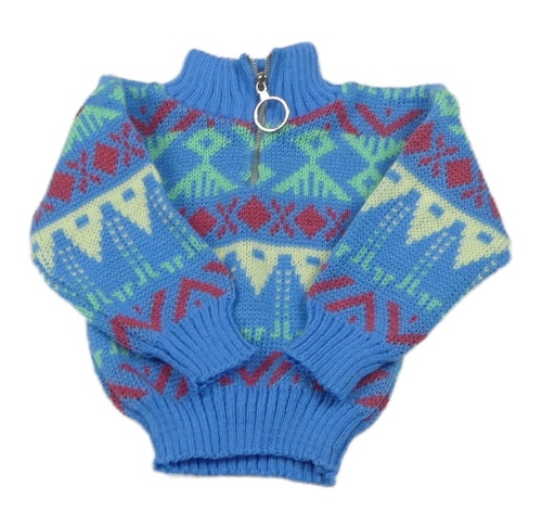 Modro-barevný vzorovaný svetr