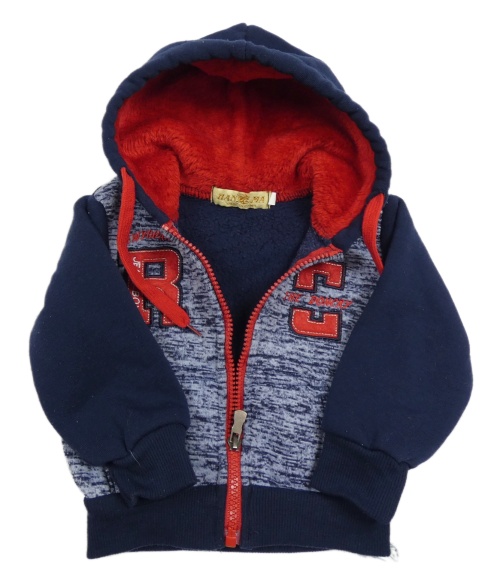 Tmavomodrá melírovaná propínací mikina s písmeny a kapucí